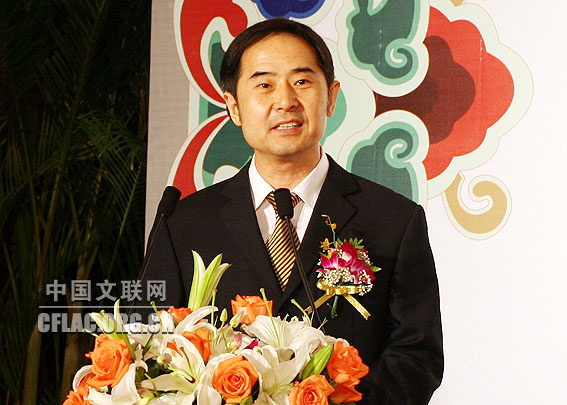 覃志刚在发布会上讲话。中国文联网 余宁 摄