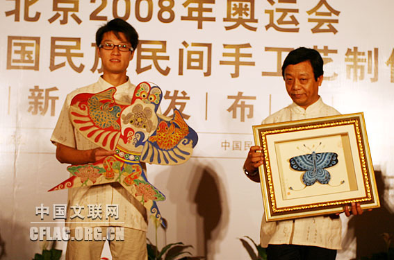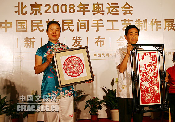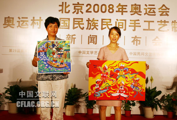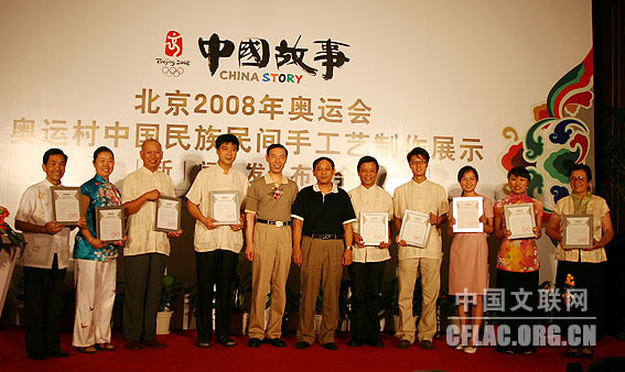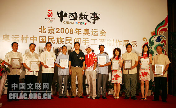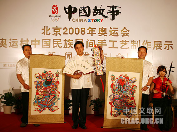 记者在7月26日举行的“中国故事:北京2008中国民族民间手工艺制作与展示活动”新闻发布会上获悉,7月27日到8月27日,第29届奥林匹克运动会组织委员会、中国文学艺术界联合会、中国民间文艺家协会、北京市文联在奥运村里举办“中国民族民间手工艺制作与展示活动”。中国文联党组副书记、副主席覃志刚,党组成员、书记处书记白庚胜,中国民协分党组书记罗杨,中国文联办公厅主任夏朝华、国内联络部主任夏潮、机关党委专职副书记徐宝玉,中国音协秘书长郑会林等以及北京奥组委、北京市文联等单位的领导出席了新闻发布会。