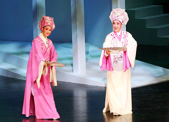 茅威涛、陈晓红演唱新版越剧《梁山伯与祝英台》选段。高扬 摄