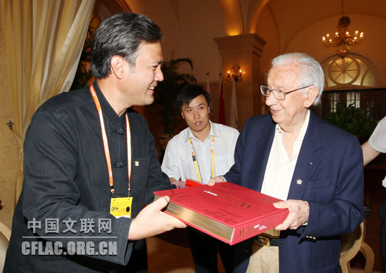 萨马兰奇精神矍烁,他郑重地戴上白手套一页页翻看画册、爱不释手。对画册中优美的摄影作品,萨翁几次问道:“是谁拍的?是不是都是中国摄影师拍的?”他说:“我是中国人民的老朋友,感谢你们让我看到了这么多精美的画面,我将把画册放在家中醒目的地方欣赏、珍藏。”