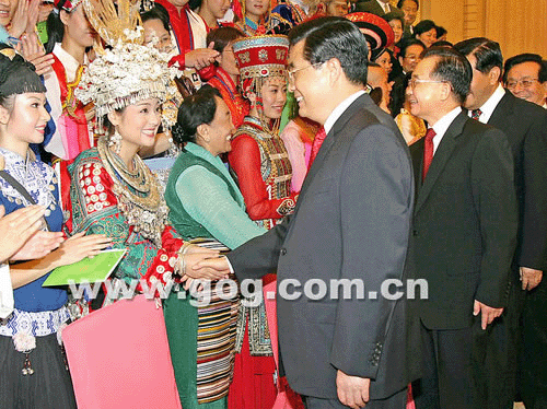 2006年,在第三届全国少数民族汇演演出之后,党和国家领导和亲切接见《多彩贵州风》主要演员