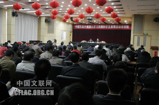 10月21日,中国文联举行开展深入学习实践科学发展观活动培训班。图为培训报告会现场。中国文联网 余宁 摄