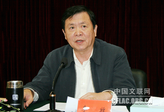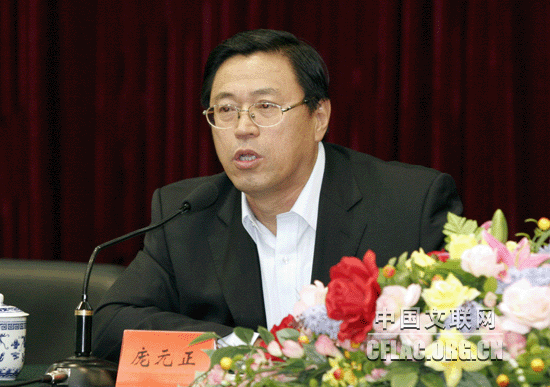 10月21日,中国文联举行开展深入学习实践科学发展观活动培训班。图为庞元正作报告。中国文联网 余宁 摄