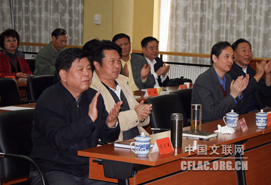 10月21日,中国文联举行开展深入学习实践科学发展观活动培训班。图为胡振民覃志刚廖奔白庚胜等被精彩的报告吸引。中国文联网 余宁 摄