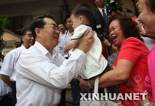 10月18日至20日,中共中央政治局常委李长春先后到深圳、东莞、广州等地,深入农村、企业、街道、社区和基层文化单位,就深入贯彻落实科学发展观、推动经济社会又好又快发展、加强社会主义文化建设等进行调研。这是10月18日,李长春在深圳罗湖区渔民村调研时与村民在一起。 新华社记者刘卫兵摄