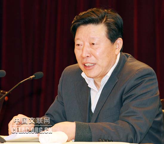 11月5日,由中国文联主办的全国文艺界领导干部贯彻落实科学发展观研讨班在京举行。图为全国政协副主席、中国文联主席孙家正作报告。中国文联网 余宁 摄