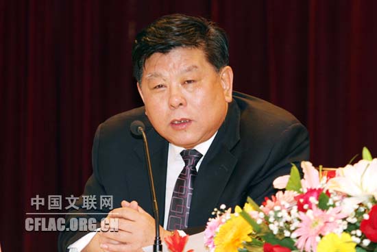11月5日,由中国文联主办的全国文艺界领导干部贯彻落实科学发展观研讨班在京举行。图为中国文联党组书记、副主席胡振民在主持研讨班。中国文联网 余宁 摄