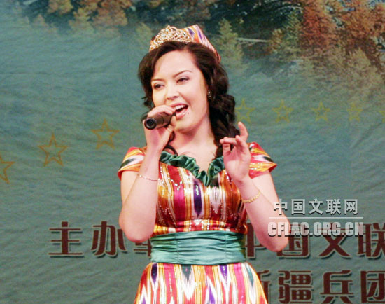 热米拉演唱歌曲《请你尝尝哈密瓜》、《天山南北》。中国文联网 郑荣健 摄