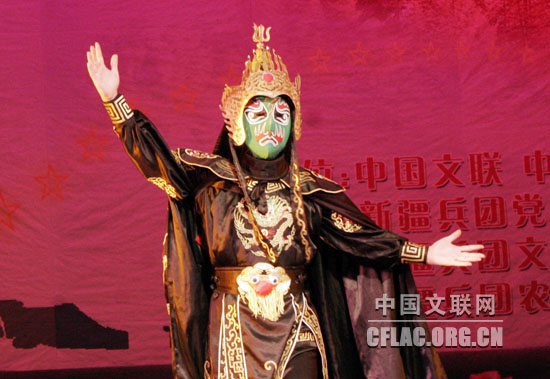 12月20日至21日,由中国文联、中国杂协、新疆生产建设兵团党委宣传部、新疆生产建设兵团文联主办,新疆生产建设兵团农十三师承办的“送欢乐、下基层”慰问演出活动在新疆哈密举行,70多位艺术家为屯垦戍边的农十三师广大职工群众送上了精彩的文艺节目。图为李彦培表演魔术《变脸》。中国文联网 郑荣健 摄