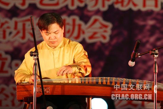 12月26日下午,宁夏回族自治区银川经济技术开发区共享铸造车间里,千余产业工人和农民工或整齐地坐好方阵,或站立在高低错落的巨大机床上,暂停了机器的轰鸣,倾听悠扬的歌声在这里响起。这是由中国文联、中国音协、宁夏回族自治区党委宣传部联合主办的“送欢乐、下基层”慰问演出活动在银川的首场演出。图为王中山进行古筝独奏表演。张大勇
