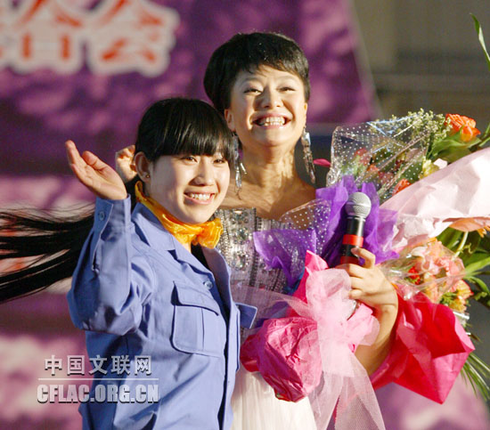 12月26日下午,宁夏回族自治区银川经济技术开发区共享铸造车间里,千余产业工人和农民工或整齐地坐好方阵,或站立在高低错落的巨大机床上,暂停了机器的轰鸣,倾听悠扬的歌声在这里响起。这是由中国文联、中国音协、宁夏回族自治区党委宣传部联合主办的“送欢乐、下基层”慰问演出活动在银川的首场演出。图为产业工人上台献花。张大勇 摄