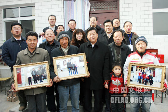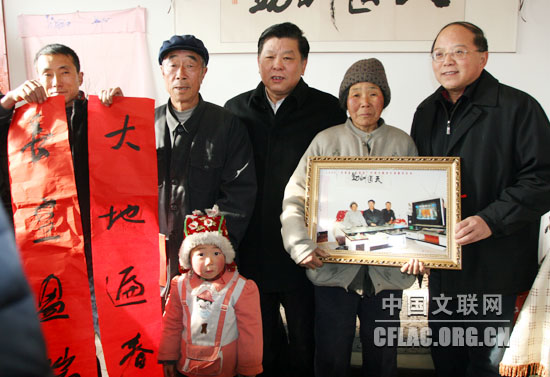 中国文联党组书记、副主席胡振民等和李根义一家合影。中国文联网 余宁 摄