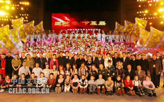 演出结束后,现场领导与演职人员合影。中国文联网 余宁 摄