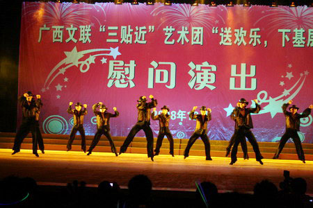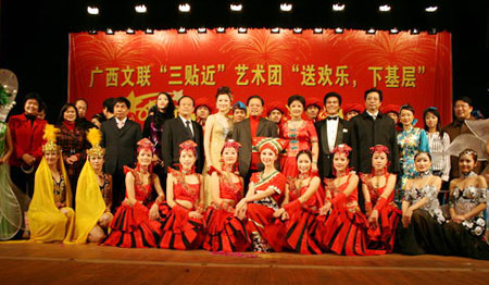 带着全区文学艺术工作者的一片深情厚谊,2008年12月28日,广西文联“送欢乐下基层”艺术团走进罗城仫佬族自治县,为当地的老百姓献上一席艺术盛宴。
