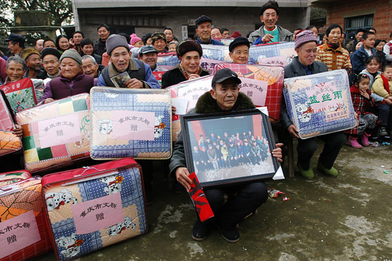 重庆市文联向涪陵区李渡龙桥敬老院、困难群众赠送全家福,棉被等慰问品。