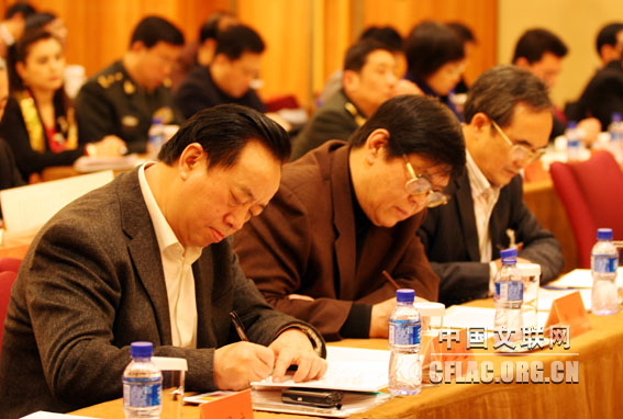 1月11日,中国文联八届四次全委会在京召开。图为与会委员认真做会议笔记。