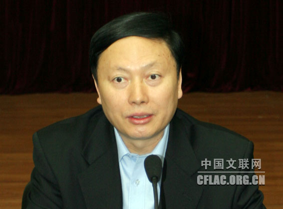 1月15日,中国文联在京召开深入学习实践科学发展观活动分析检查阶段总结暨整改落实阶段动员会。图为中国文联党组副书记、副主席李牧讲话。中国文联网 余宁 摄