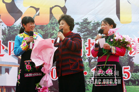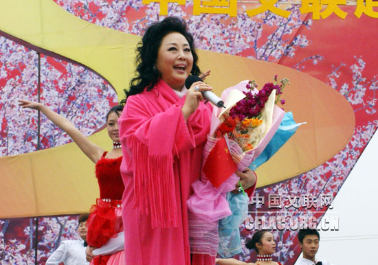 1月14日至15日,中国文联组织文艺家奔赴四川地震灾区绵竹市和北川县,举行“送欢乐、下基层”慰问演出活动。图为邓玉华演唱《情深意长》。邓风 摄