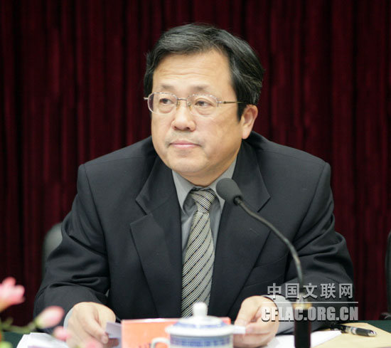 2月25日,中国文联召开深入学习实践科学发展观活动总结暨2008年度先进集体和先进个人表彰大会。图为中国文联党组书记、副主席胡振民讲话。中国文联网 孟祥宁 摄