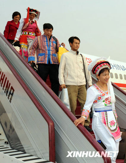 3月2日,出席十一届全国人大二次会议的云南代表团抵达北京。新华社记者黄敬文摄