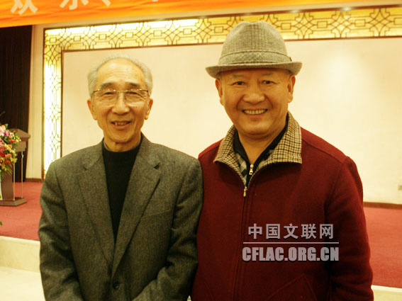 3月2日,中国文联在京举办文艺界全国人大代表全国政协委员联谊会暨中国文联“送欢乐、下基层”活动表彰会。图为丹增、勒尚谊合影。中国文联网 孟祥宁 摄 |