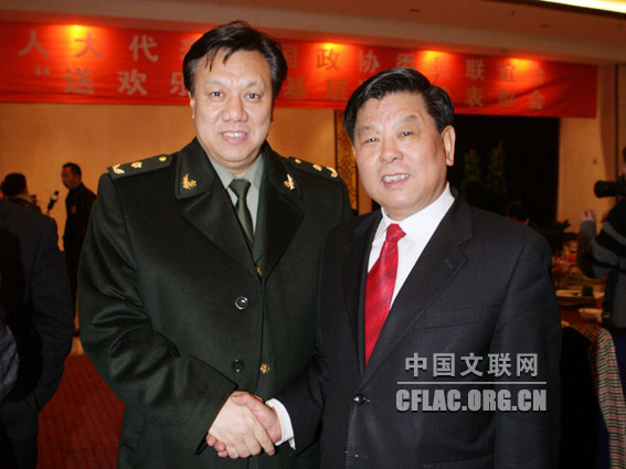 3月2日,中国文联在京举办文艺界全国人大代表全国政协委员联谊会暨中国文联“送欢乐、下基层”活动表彰会。图为中国文联党组书记、副主席胡振民和刘斌合影。中国文联网 孟祥宁 摄 |