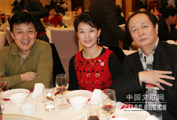 3月2日,中国文联在京举办文艺界全国人大代表全国政协委员联谊会暨中国文联“送欢乐、下基层”活动表彰会。图为宋祖英(中)、赵季平(右)、吕继宏合影。中国文联网 孟祥宁 摄 |