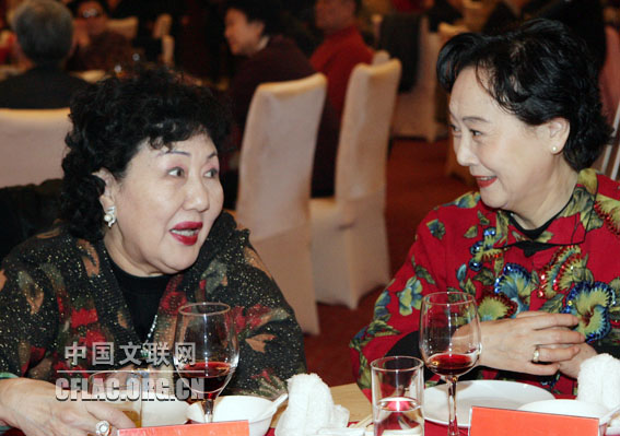 3月2日,中国文联在京举办文艺界全国人大代表全国政协委员联谊会暨中国文联“送欢乐、下基层”活动表彰会。图为孙毓敏、刘长瑜合影。中国文联网 孟祥宁 摄 |