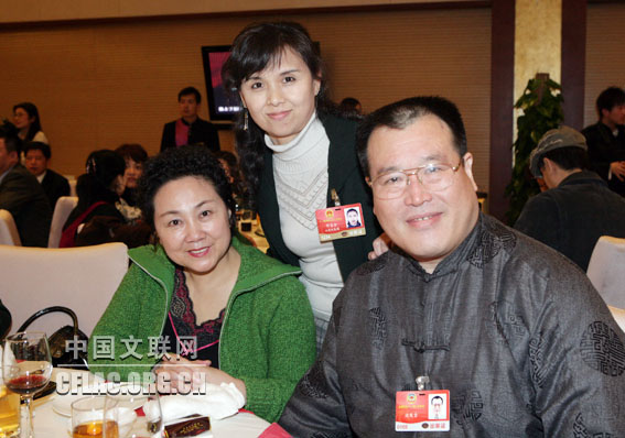 3月2日,中国文联在京举办文艺界全国人大代表全国政协委员联谊会暨中国文联“送欢乐、下基层”活动表彰会。图为刘秀荣(左)、邓宝金(中)、边发吉合影。中国文联网 孟祥宁 摄 |