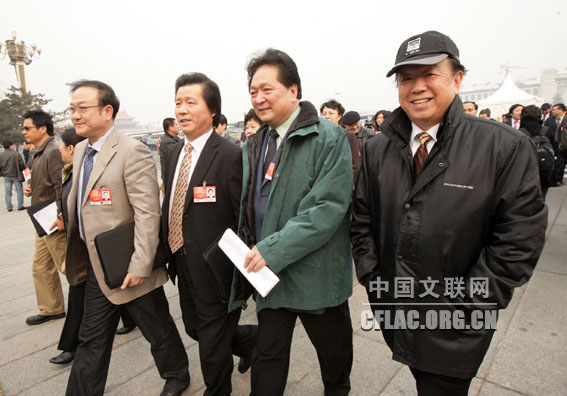 3月3日,中国人民政治协商会议第十一届全国委员会第二次会议在北京人民大会堂开幕。图为李前宽、瞿弦和、言恭达等政协委员步入人民大会堂。中国文联网 孟祥宁 摄