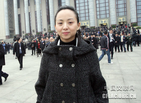 3月3日,中国人民政治协商会议第十一届全国委员会第二次会议在北京人民大会堂开幕。图为政协委员邰丽华在人民大会堂前留影。中国文联网 孟祥宁 摄 |