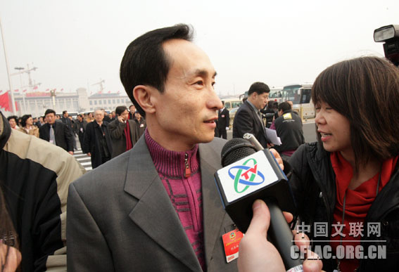 3月3日,中国人民政治协商会议第十一届全国委员会第二次会议在北京人民大会堂开幕。图为政协委员巩汉林接受媒体采访。中国文联网 孟祥宁 摄 |