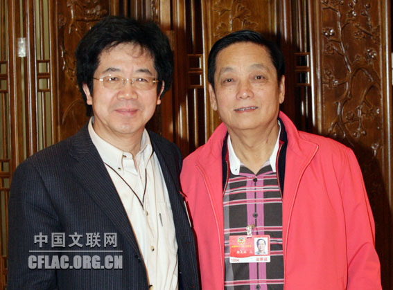 3月4日,在全国政协第十一届全国委员会第二次会议的小组讨论会后,腾矢初、韩美林委员合影。中国文联网 孟祥宁 摄