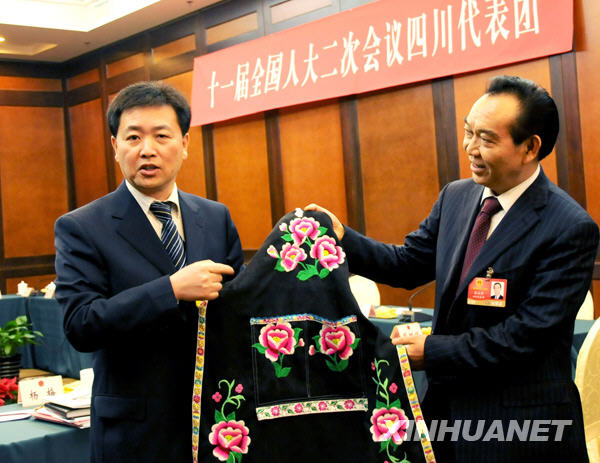 | 代表会上“卖”羌绣[图] |