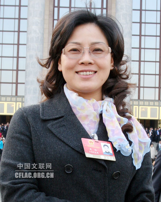 江西省赣州市文化局调研员赣南采茶歌舞剧院院长龙红代表。中国文联网 郭青剑 摄