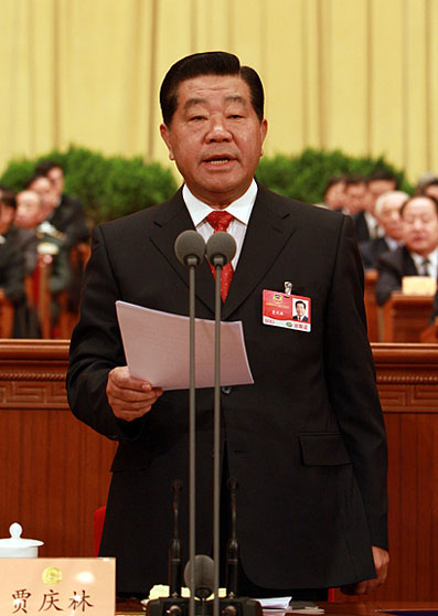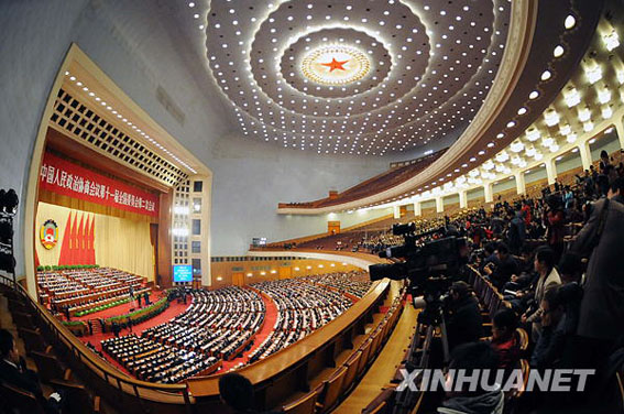 3月12日,中国人民政治协商会议第十一届全国委员会第二次会议在北京人民大会堂举行闭幕会。全国政协主席贾庆林主持闭幕会并讲话。新华社记者鞠鹏摄
