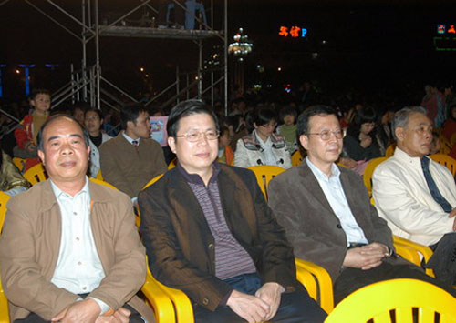 钦州市委常委、宣传部长、副市长徐贵,广西文联副书记、副主席黄德昌等领导观看慰问演出。晓言