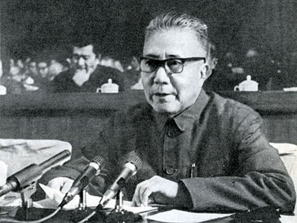 图为周扬在中国文学艺术工作者第四次代表大会上做报告。