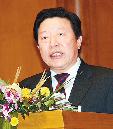 图为孙家正在中国文学艺术界联合会第八次全国代表大会上致闭幕词。