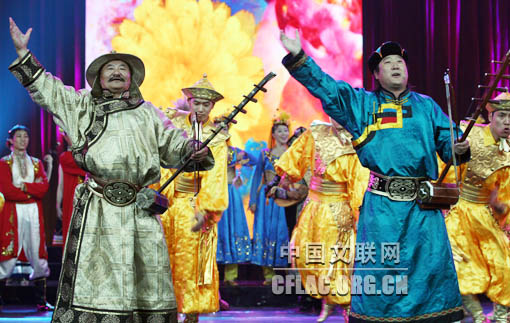 7月8日,“笑声与时代——庆祝中国曲艺家协会成立60周年专场晚会”在北京举行。图为少数民族曲艺集锦。中国文联网