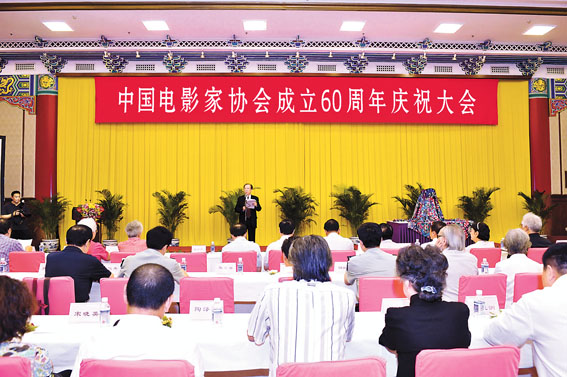7月8日,中国电影家协会成立60周年庆祝大会在全国政协礼堂召开,老中青三代电影人济济一堂,共同述说伴随着新中国一同成立的中国影协辉煌的昨天,展望更加美好的明天。中国文联党组书记、副主席胡振民,中国文联党组成员、副主席杨志今,中宣部文艺局副局长孟祥林,国家广电总局电影局副局长张宏森,中国文联荣誉委员、中国影协名誉主席谢铁骊,中国影协顾问于洋、于蓝、王晓棠、田华、刘建中、苏叔阳、李国民、高鸿鹄,主席李前宽,分党组书记、副主席康健民,副主席尹力、成龙、张会军,中国文联各全国文艺家协会、各直属单位、机关各部室有关负责人,以及中国影协在京理事、会员、电影艺术家代表等共200多人参加了会议。中国文联、中宣部文艺局、国家广电总局等单位,各电影制片厂、制片单位,各地电影家协会纷纷发来贺信、贺电,表达对中国影协成立60周年的祝贺。