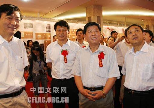 7月10日,由中国文学艺术界联合会、中国邮政集团公司主办,中国文联国内联络部、中国邮政文史中心承办,中国邮政邮票博物馆、《集邮博览》杂志社协办的“百花芬芳——纪念中国文联成立60周年集邮展”在中国邮政邮票博物馆与广大集邮爱好者见面。图为中国文联党组书记、副主席胡振民,中国文联党组副书记、副主席覃志刚观看展览。中国文联网