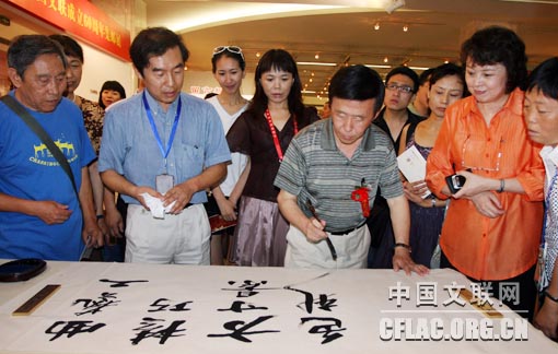 7月10日,由中国文学艺术界联合会、中国邮政集团公司主办,中国文联国内联络部、中国邮政文史中心承办,中国邮政邮票博物馆、《集邮博览》杂志社协办的“百花芬芳——纪念中国文联成立60周年集邮展”在中国邮政邮票博物馆与广大集邮爱好者见面。图为著名评书表演艺术家田连元为展览题字。中国文联网