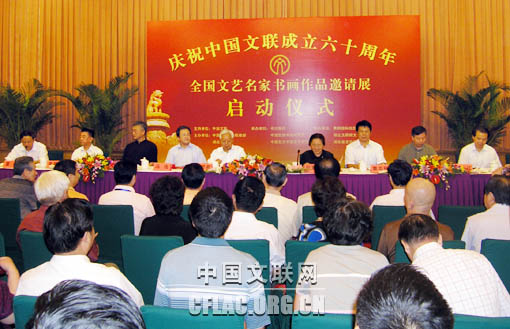 7月11日,由中国文联支持,中国文联国内联络部和湖北省文联联合主办的庆祝新中国成立60周年暨中国文联成立60周年全国文艺名家书画作品邀请展启动仪式在全国政协礼堂举行。全国人大常委会副委员长周铁农,全国政协副主席、中国文联主席孙家正分别为展览题词。