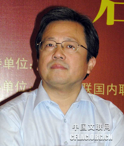 7月11日,“庆祝新中国成立60周年暨中国文联成立60周年全国文艺名家书画作品邀请展启动仪式”在北京全国政协礼堂举行。图为中国文联党组副书记、副主席覃志刚出席启动仪式并讲话。中国文联网