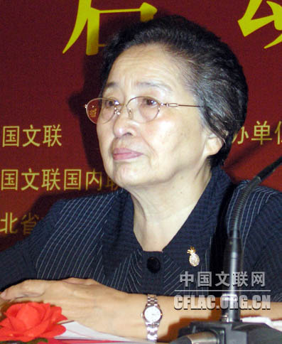 7月11日,“庆祝新中国成立60周年暨中国文联成立60周年全国文艺名家书画作品邀请展启动仪式”在北京全国政协礼堂举行。图为原全国人大常委会副委员长何鲁丽出席启动仪式。中国文联网