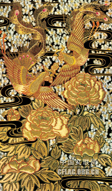 钉金绣《凤穿牡丹》 裴延礼、李淑英