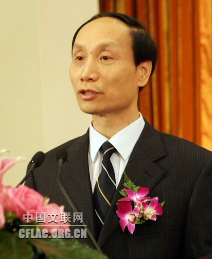 7月17日15时,纪念中国文联成立六十周年大会在北京人民大会堂隆重召开。图为中宣部副部长翟卫华宣读中共中央政治局常委李长春的贺信。中国文联网 孟祥宁摄影报道