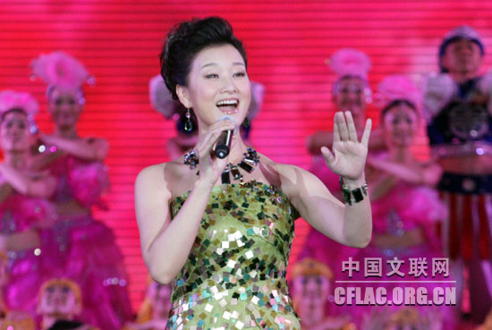 7月17日,《百花赋》纪念中国文联成立60周年文艺晚会在北京人民大会堂举行。图为宋祖英演唱《大地飞歌》。中国文联网