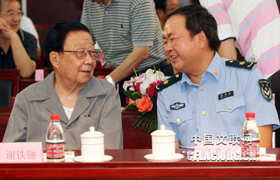 7月18日上午,纪念中国文学艺术界联合会成立六十周年座谈会在京召开。图为谢铁骊与高希希交谈。中国文联网